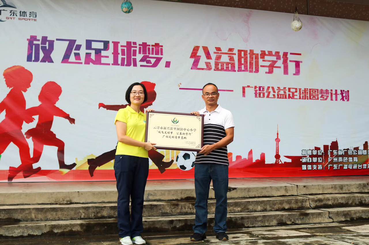 9月22日(周五)下午,廣鋁公益足球圓夢(mèng)計(jì)劃首站來到了云浮新興縣里洞鎮(zhèn)中心小學(xué),并在學(xué)校成立“廣鋁公益足球圓夢(mèng)基地”。