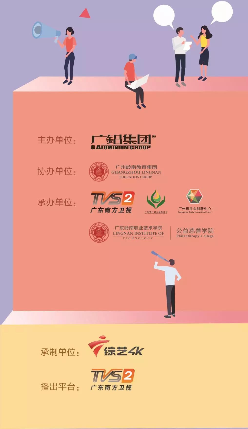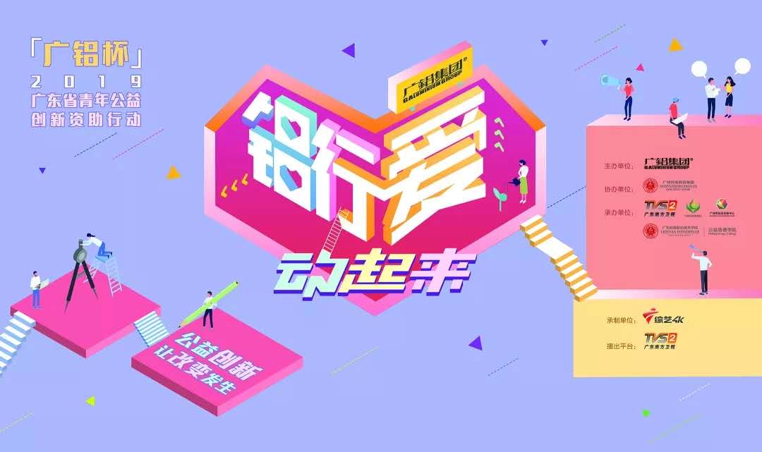 由廣鋁集團(tuán)有限公司主辦,廣州嶺南教育集團(tuán)協(xié)辦,廣東廣播電視臺南方衛(wèi)視、廣東省廣鋁公益基金會、廣東嶺南職業(yè)技術(shù)學(xué)院公益慈善學(xué)院、廣州市社會創(chuàng)新中心承辦,廣東廣播電視臺綜藝4K頻道承制的《鋁行愛 動起來“廣鋁杯”2019廣東省青年公益創(chuàng)新資助行動》活動正在熱烈進(jìn)行中。
