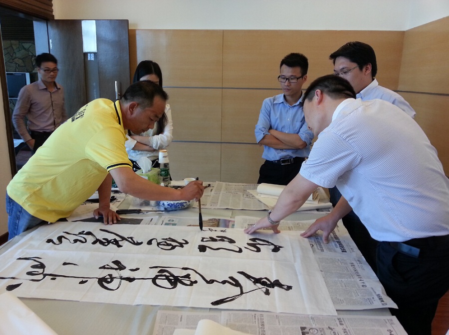 28日下午2時(shí),書法比賽正式開始,首先開始的是鋼筆書法,各個(gè)參賽同仁都使出自己的看家本領(lǐng),勾勒各自的創(chuàng)作,不到半小時(shí)一篇篇鋼筆字作品就此問世。鋼筆字作品里面不乏佳作,書寫手法有正楷的、隸書的、小篆等。接著,萬眾期待的毛筆書法開始了,參賽者們摩拳擦掌已久,對(duì)創(chuàng)作內(nèi)容早已胸有成竹,只見廣鋁幕墻有限公司郭鴻杰正筆走龍蛇揮毫出狂草大作,主題立意和筆尖功夫皆為上乘。在其完成大作后,向大家介紹到他所用的毛筆已有13年的歷史了。書生指尖的筆,猶如劍客手中劍,十年磨一劍,高超的技藝需要漫長的時(shí)間積累,終獲大成。正如廣鋁集團(tuán)企業(yè)自身一樣,專注二十一年,全力打造“百年廣鋁”品牌。貴州廣鋁也在當(dāng)天同步進(jìn)行書法比賽活動(dòng),藏龍臥虎的貴州廣鋁也是佳作涌現(xiàn),令人津津樂道。