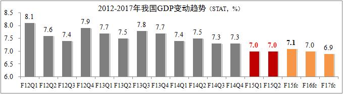 發(fā)稿時間:2015-07-22國家統(tǒng)計(jì)局最新公布數(shù)據(jù),2015年上半年我國GDP同比增速為7%,其中第一季度和第二季度同比增速均為7%,經(jīng)濟(jì)運(yùn)行趨于穩(wěn)定。世界銀行在7月上旬公布的《中國經(jīng)濟(jì)簡報》預(yù)測,2015年中國經(jīng)濟(jì)增速為7.1%,隨后三年將按0.1個百分點(diǎn)的速度回落??傮w而言,未來幾年我國經(jīng)濟(jì)增速將呈現(xiàn)逐步放緩的趨勢,其主要原因取決于結(jié)構(gòu)性改革進(jìn)程。