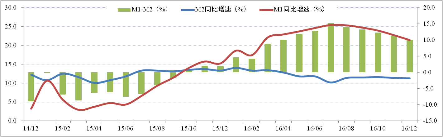 據(jù)央行數(shù)據(jù)統(tǒng)計顯示,中國12月M2貨幣供應同比增速為11.3%,環(huán)比回落0.1個百分點;M1貨幣供應同比增速為21.4%,環(huán)比回落1.3個百分點。 M1與M2剪刀差進一步縮小為10.1%。