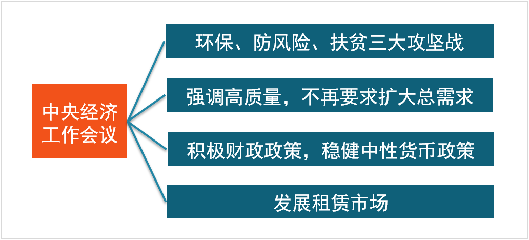 中央經(jīng)濟(jì)工作會(huì)議12月18-20日在北京舉行,會(huì)議再次確定我國(guó)經(jīng)濟(jì)已由高速增長(zhǎng)階段轉(zhuǎn)向高質(zhì)量發(fā)展階段,并為我國(guó)2018年經(jīng)濟(jì)工作定下方向和基調(diào)。預(yù)計(jì)明年貨幣供應(yīng)偏緊,信貸低增速成為常態(tài),GDP增速將放緩至6.5%左右。而由于財(cái)政政策積極,加上多主體地產(chǎn)供應(yīng)體系的構(gòu)建,租賃用地建設(shè)以及棚戶區(qū)改造將支撐2018年房地產(chǎn)投資增速好于預(yù)期。