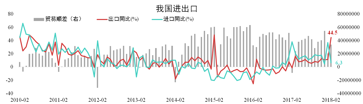 分析認(rèn)為:2月進(jìn)口增速大幅下滑,但1-2月總進(jìn)口增速較去年同期僅下滑6個(gè)百分點(diǎn),內(nèi)需有轉(zhuǎn)弱跡象但仍需更多工業(yè)數(shù)據(jù)驗(yàn)證。對(duì)美貿(mào)易順差的繼續(xù)擴(kuò)大可能引發(fā)特朗普動(dòng)用301條款,將會(huì)對(duì)海運(yùn)費(fèi)以及美元帶來(lái)明顯影響。