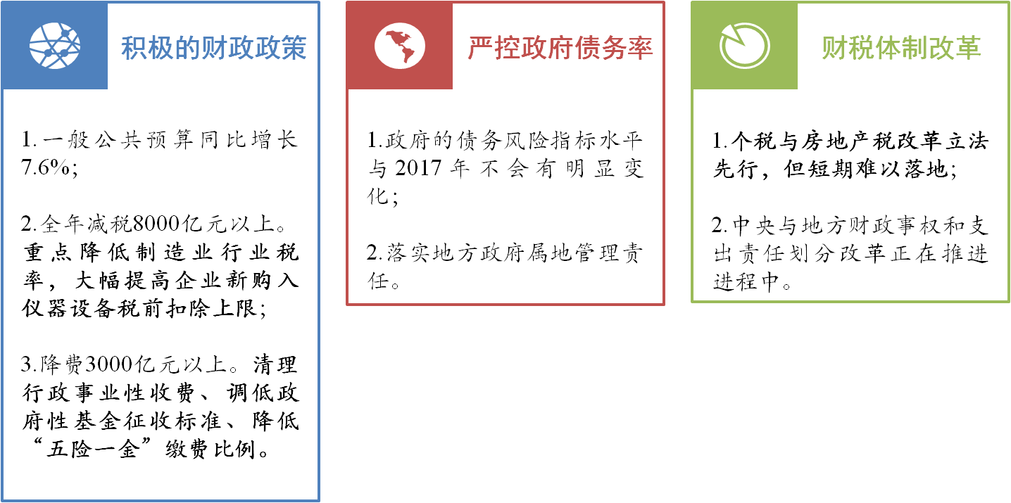 分析認(rèn)為:地方政府專(zhuān)項(xiàng)債、中央基建投資分別較2017年增加5500億、300億元,因此今年財(cái)政政策較去年只強(qiáng)不弱。另外減稅降費(fèi)將進(jìn)一步降低企業(yè)稅負(fù),提高企業(yè)競(jìng)爭(zhēng)力,釋放市場(chǎng)活力。