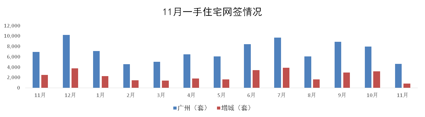 11月,廣州一手住宅網(wǎng)簽量成交4,657套,環(huán)比下跌42%。其中增城市場11月一手住宅網(wǎng)簽成交863套,環(huán)比下跌73%,成交面積為9.11萬m² 。