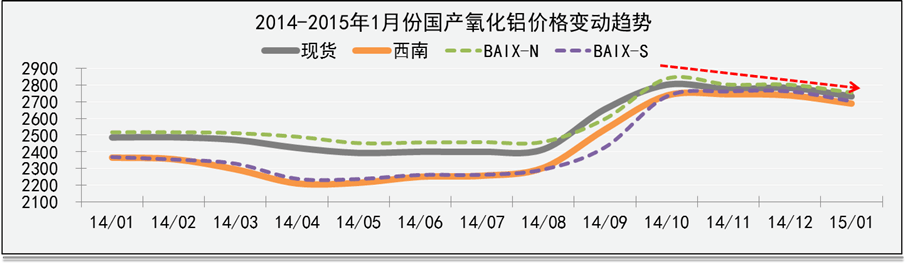 發(fā)稿時間:2015-01-242014年度我國氧化鋁市場價格總體表現(xiàn)為“先抑后揚”的發(fā)展趨勢,上半年市場整體延續(xù)了2013年度的弱勢,北方地區(qū)氧化鋁現(xiàn)貨價格最低滑落至2350元/噸,創(chuàng)造了近四年來的新低。第三季度氧化鋁現(xiàn)貨價格前期較為平穩(wěn),后期價格則出現(xiàn)急劇攀升的良好發(fā)展趨勢,促使氧化鋁市場價格短期內(nèi)提升至近三年的高點。第四季度氧化鋁現(xiàn)貨價格又逐步呈現(xiàn)回落趨勢,并于2014年底基本企穩(wěn)。整體上看,2014年度氧化鋁國產(chǎn)現(xiàn)貨加權(quán)價格為2544元/噸,同比上漲1.4%,西南地區(qū)均價為2420元/噸,同比上漲2.1%。